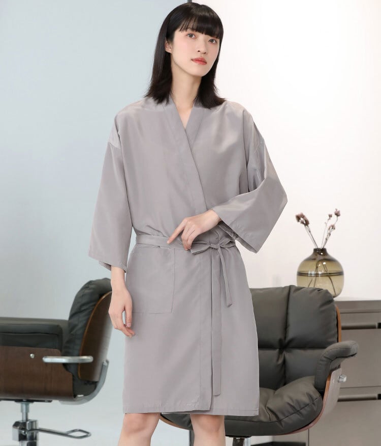 8カラー おしゃれな サロン ツイル シルク ゲスト ガウン ローブ グレー K328
